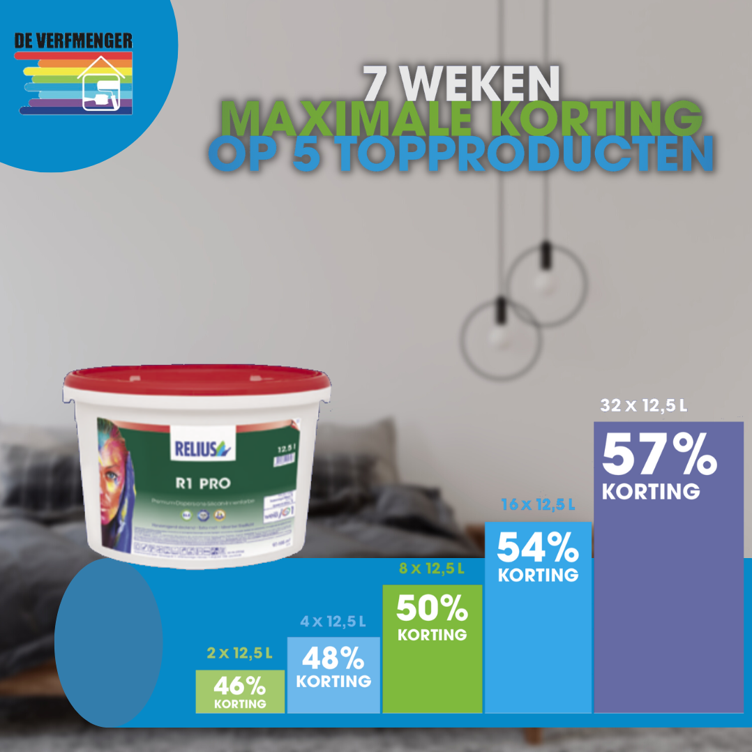 Web Relius R1 Pro Extra matte premium binnenverf De Relius R1 Pro muurverf staat. Meer gemak en voordeel met Select. Web Relius R1 Pro Muurverf is een emissievrije gesiliconiseerde niet spattende muurverf voor. Geen verzendkosten en extra bezorgopties mogelijk.